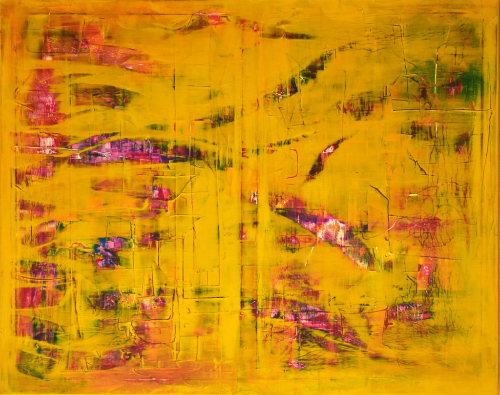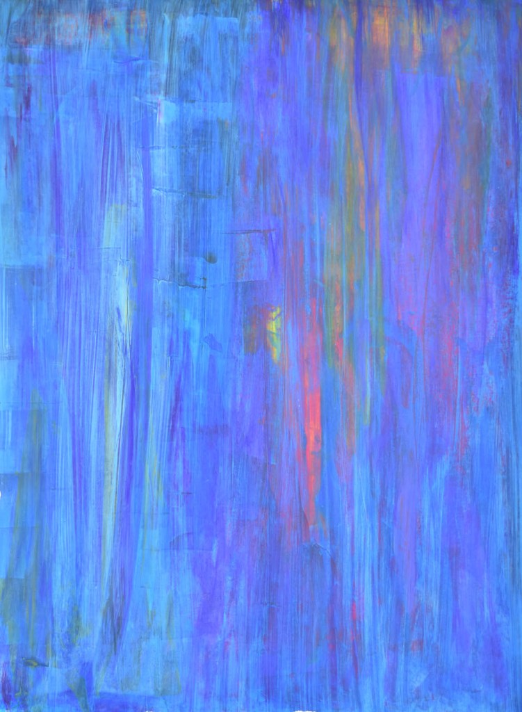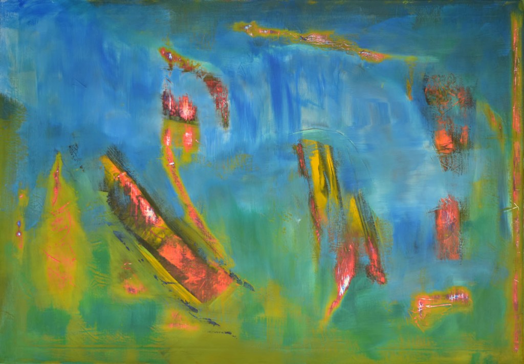 Das Abtragen erfolgt intuitiv und Bereich-bezogen. Dadurch bekomme ich Zugang zu den, in den unteren Malschichten, „eingefrorenen“ Gefühlen- Gemütszuständen.